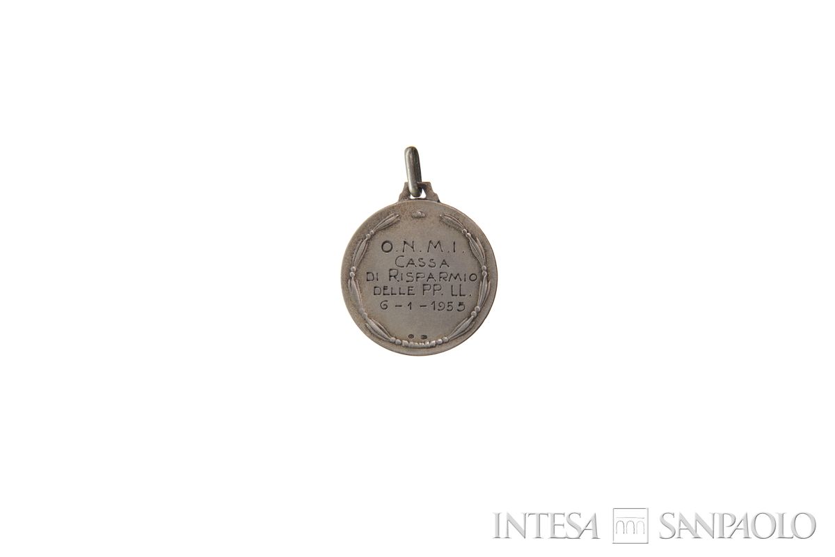 circolarmente: corona di foglie e bacche. In campo: O.N.M.I. | CASSA | DI RISPARMIO | DELLE PP.LL. | 6-1-1953