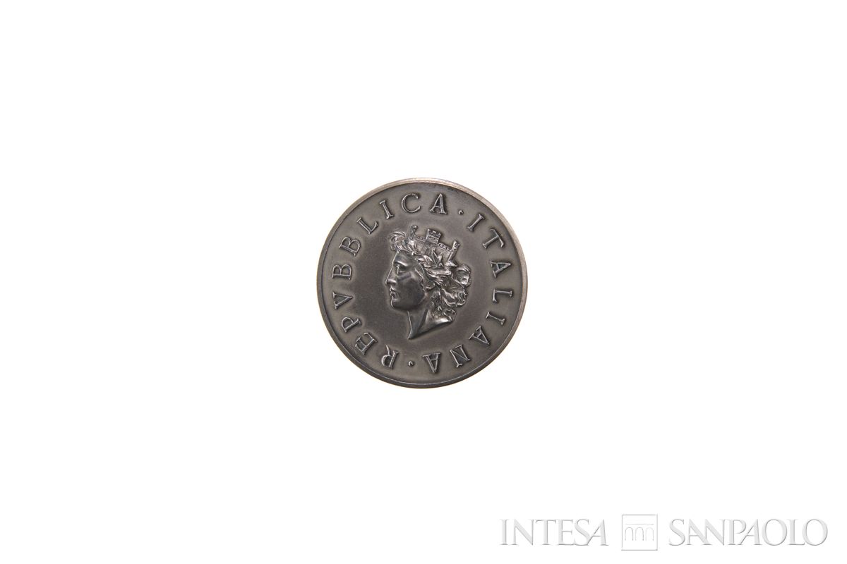 cornice lineare. Circolarmente: REPVBBLICA ITALIANA. In campo: profilo femminile (allegoria dell'Italia).