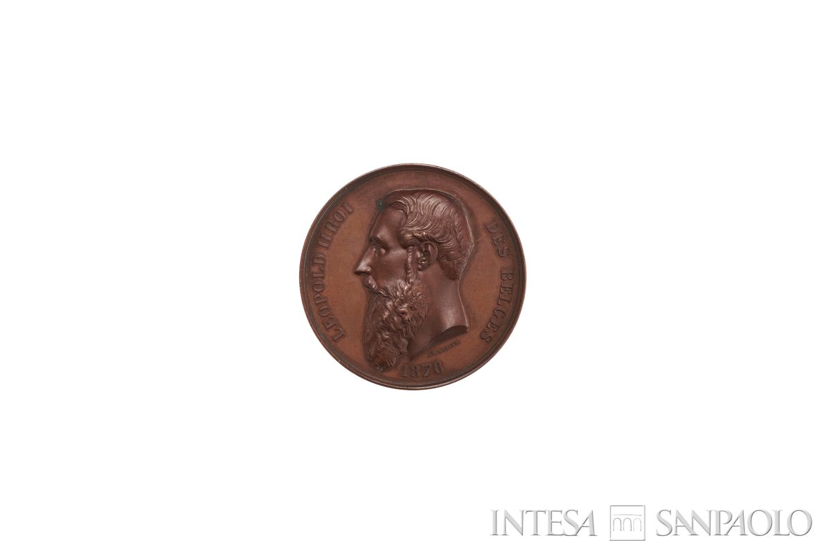 doppia cornice lineare. Circolarmente: LEOPOLD II ROI DES BELGES 1876. - In campo: ritratto del re. Al piede: ch. Wiener.