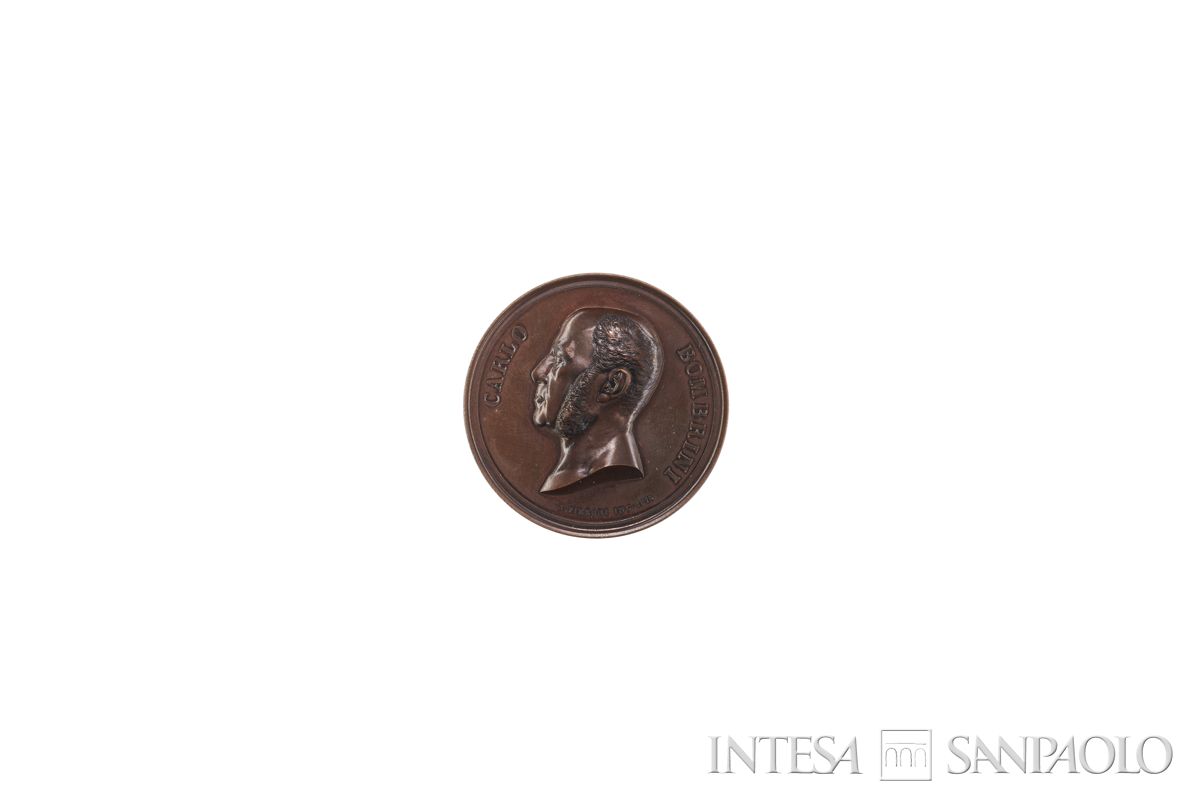 Inv. N. 78. - Carlo Bombrini (Genova, 1804 - Roma, 1882), banchiere e imprenditore fu Governatore della Banca Nazionale del Regno d'Italia, denominazione assunta nel 1867 dalla Banca Nazionale degli Stati Sardi che ingloba sia la Banca di Parma [istituto di emissione del ducato di Parma e Piacenza] sia la Banca delle Quattro Legazioni [istituto di emissione a Bologna e in Romagna]. In questo modo diventava senza alcun dubbio la più importante banca del Regno d'Italia, ormai unificato e aprì sue filiali anche nelle altre regioni. - vd. Biografie