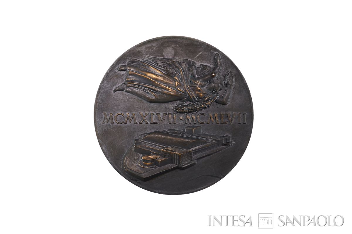 Figura femminile allegorica in volo sopra Palazzo delle Esposizioni