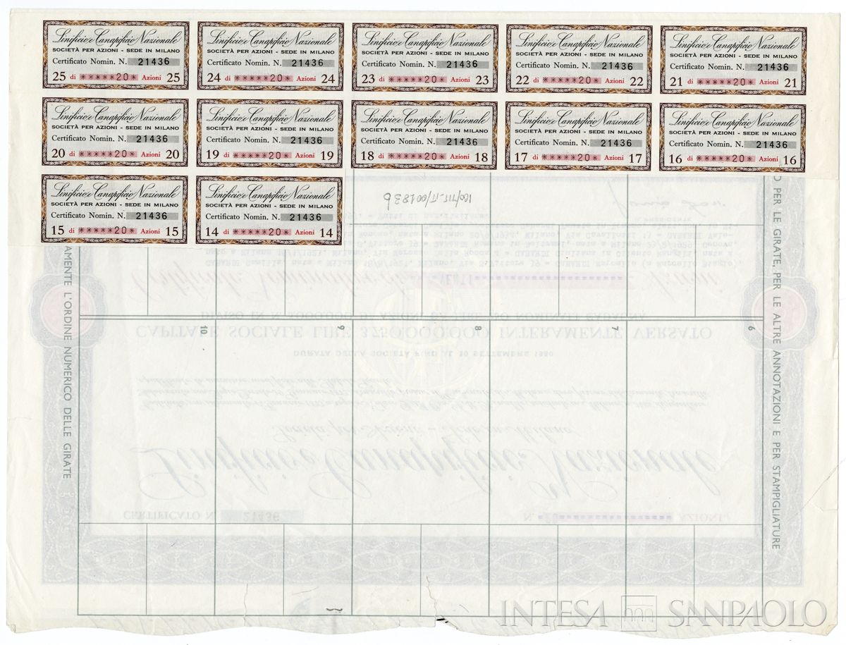 Linificio e Canapificio Nazionale SpA, certificati azionari nominativi, 12 giugno 1968 - 31 gennaio 1978