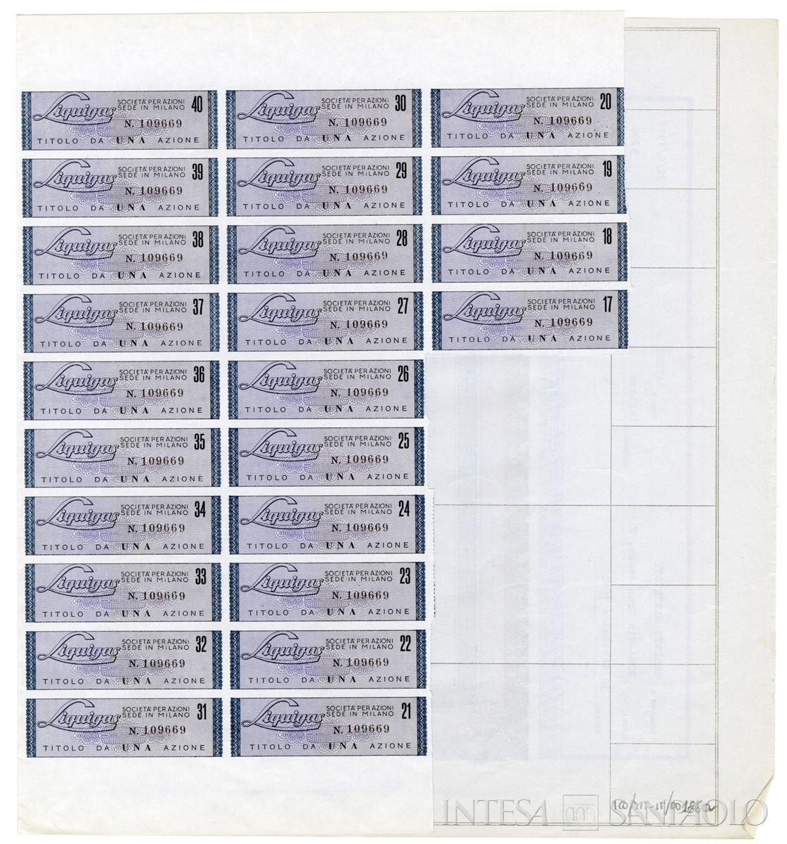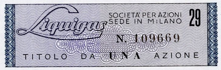 con cedole parziali; cornice decorativa; sul margine inferiore: vignetta raffigurante fiamma e scritta "Liquigas"