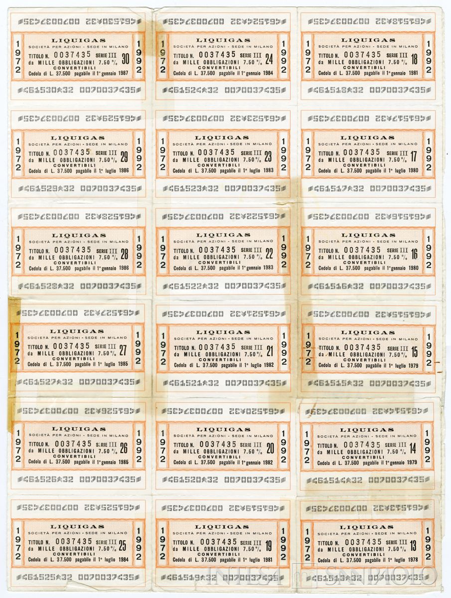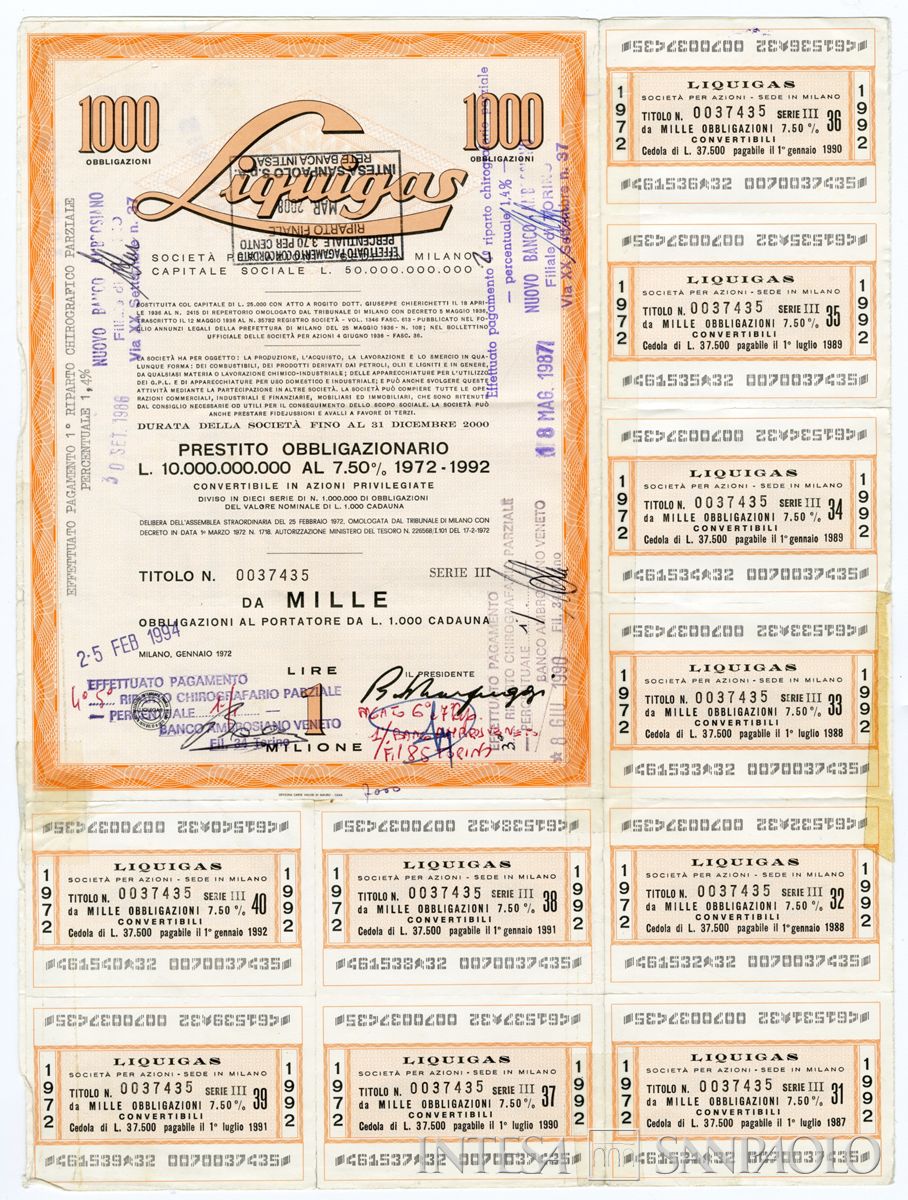 Liquigas SpA, certificati obbligazionari al portatore, gennaio 1972