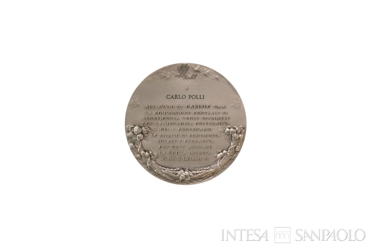 A | CARLO POLLI | ALL'AVVIO DI CARIPLO S.p.A. | LA COMMISSIONE CENTRALE DI | BENEFICENZA VUOLE ESPRIMERE | CON LA medaglia CELEBRATIVA | DEL 1° CENTENARIO | LO SPIRITO DI CONTINUITA' | IDEALE E OPERATIVA CHE DEVE ANIMARE | LA NUOVA IMPRESA | MILANO, 20 DICEMBRE 1991