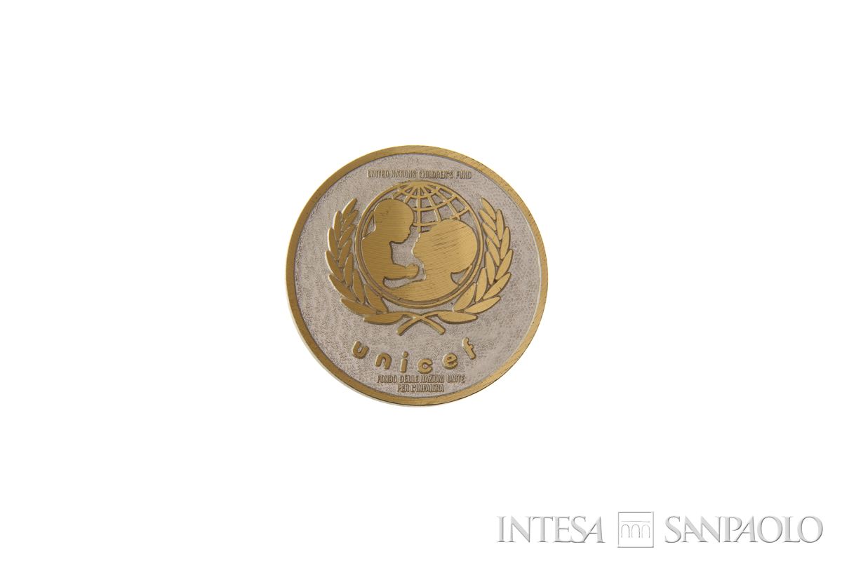 Medaglia conferita a Roma presso l'Auletta in Montecitorio, in seno all' "incontro Nazionale UNICEF/Italia - un impegno per la pace", dal presidente Farina