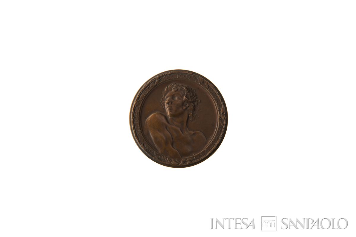 Circolarmente rami con foglie; in campo mezzo busto di uomo di tre quarti, ripreso dal basso