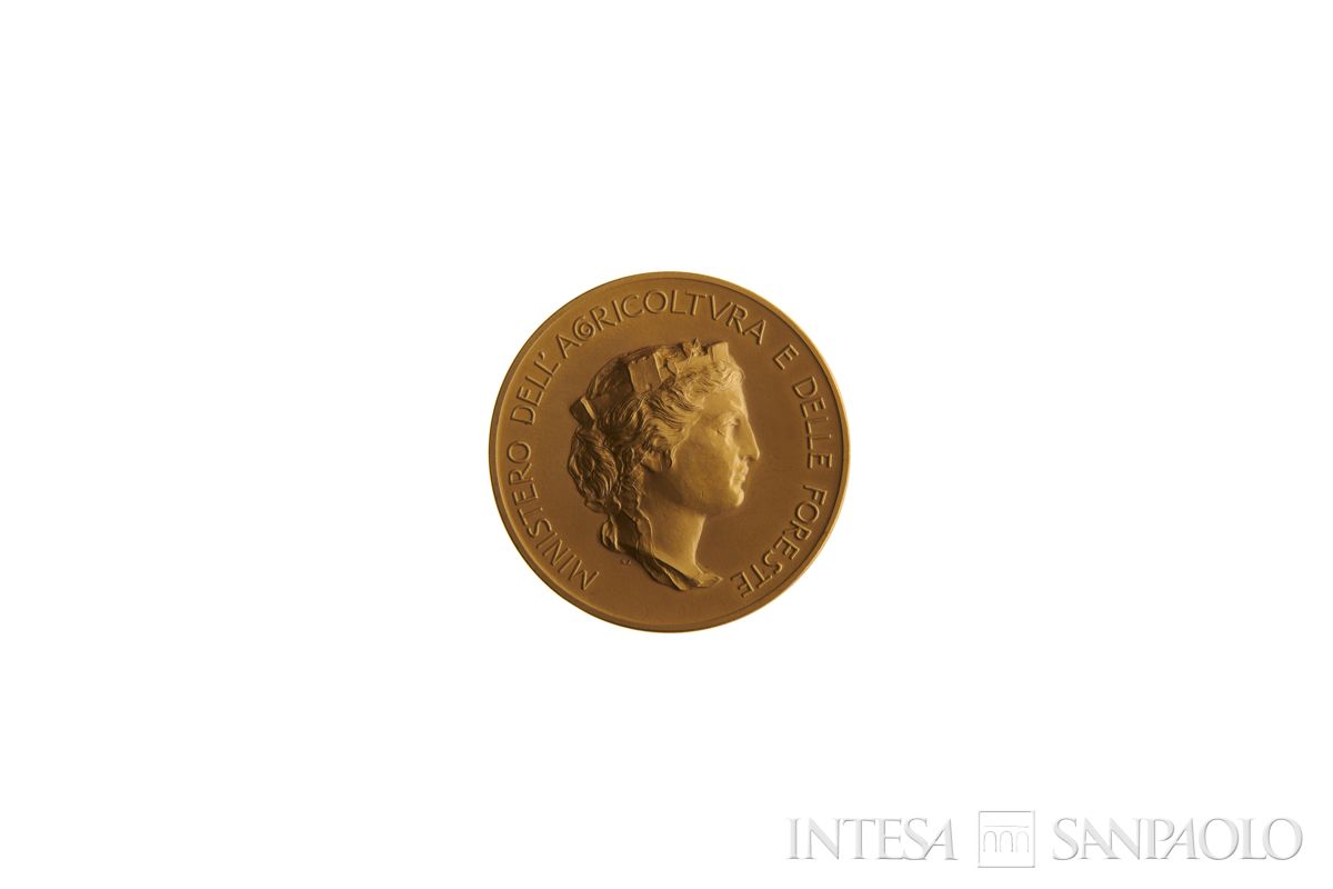 cornine lineare; circolarmente: MINISTERO DELL'AGRICOLTVRA E DELLE FORESTE. In campo: profilo femminile, simbolo dell'Italia