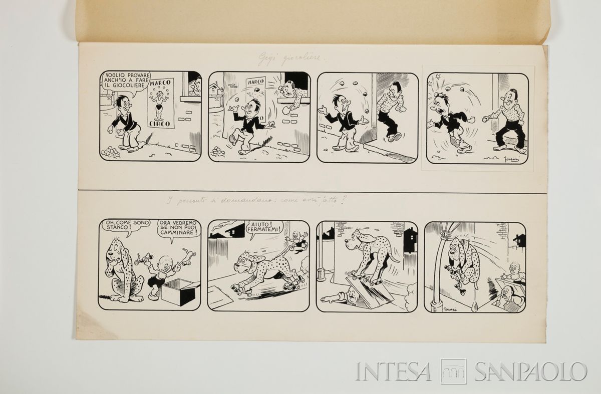 n. 16: Ferrari, "Gigi e il giocoliere"; "I passanti si domandano: come avrà fatto?";