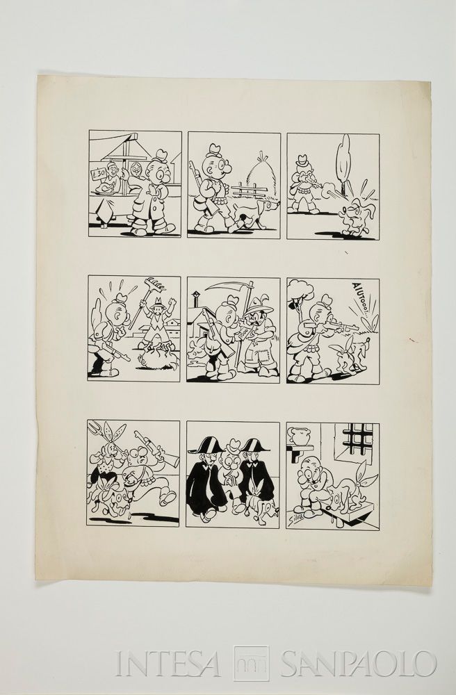 n. 17: Silva, vignette umoristiche con soggetto Tirchiettino; in allegato dattiloscritto con il testo in rima che accompagna le immagini: 9 strofe di 4 versi ciascuna;