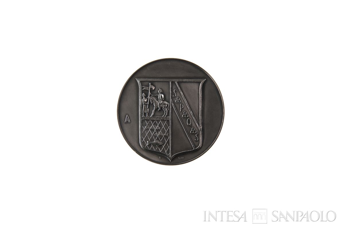 Il disegno del dritto raffigurante lo stemma del Comune e della Provincia di Rieti è stato realizzato da Arduino Angelucci, socio dell'Istituto Poligrafico e Zecca dello Stato. L'informazione proviene dalla pergamena descrittiva acclusa al cofanetto delle medaglie in argento.