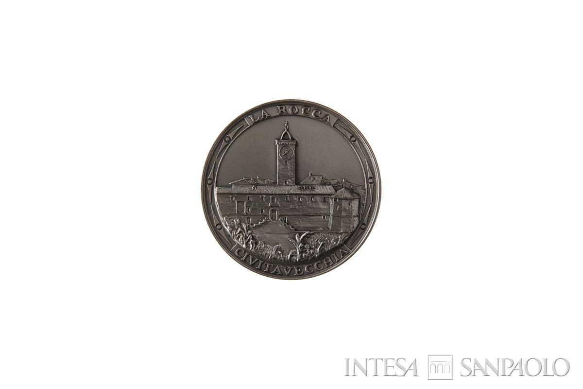 Il dritto della medaglia raffigura l'antico palazzo della Rocca di Civitavecchia, andato distrutto durante l'ultimo conflitto bellico.