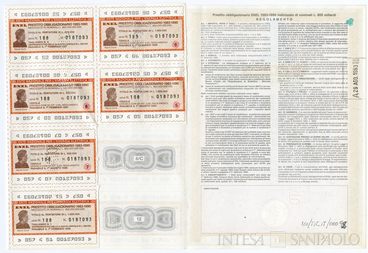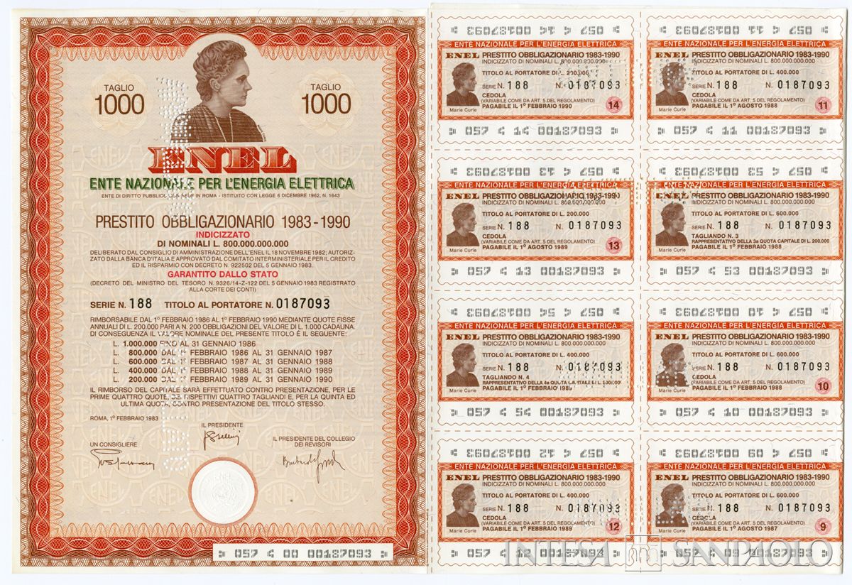 ENEL Ente nazionale per l'energia elettrica, certificati obbligazionari al portatore, 01 febbraio 1983