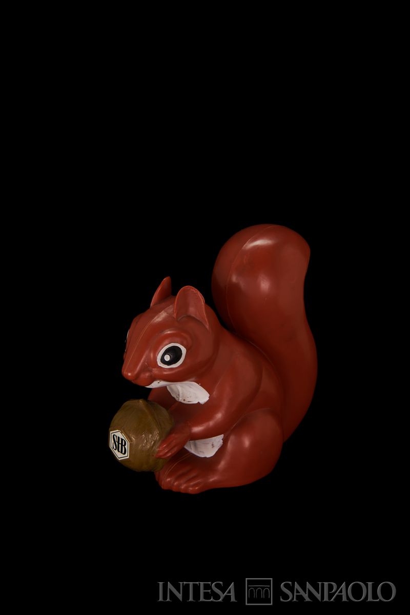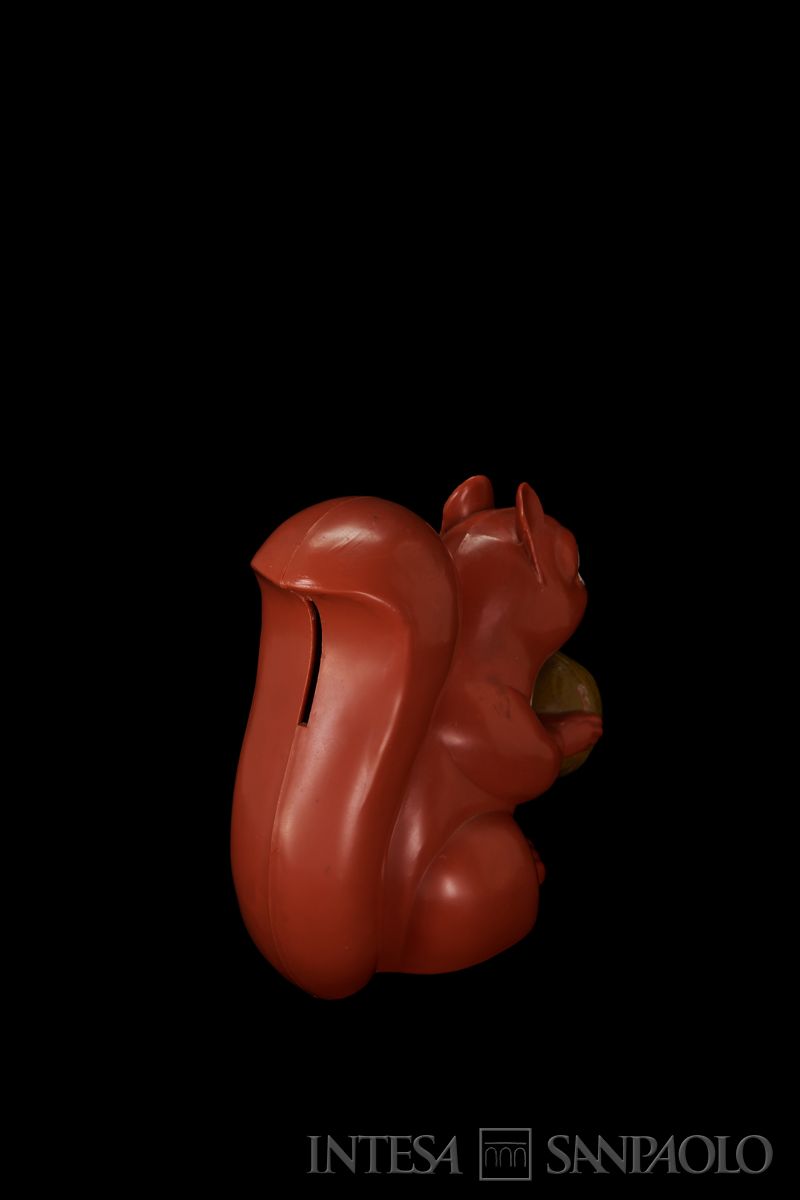 Recipiente a forma di scoiattolo; serratura sul lato inferiore.