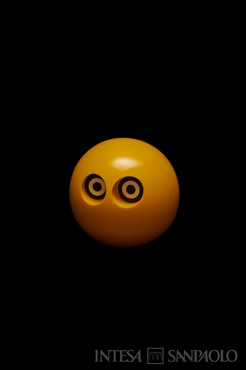 Recipiente a forma di civetta stilizzata. Sul lato superiore, accanto al nome della banca, compare anche il suo logo. Feritoia sul lato superiore. Serratura sul lato inferiore.