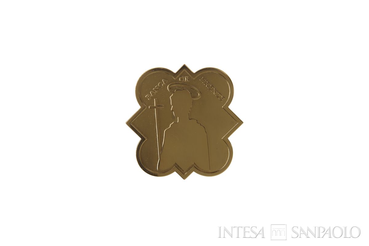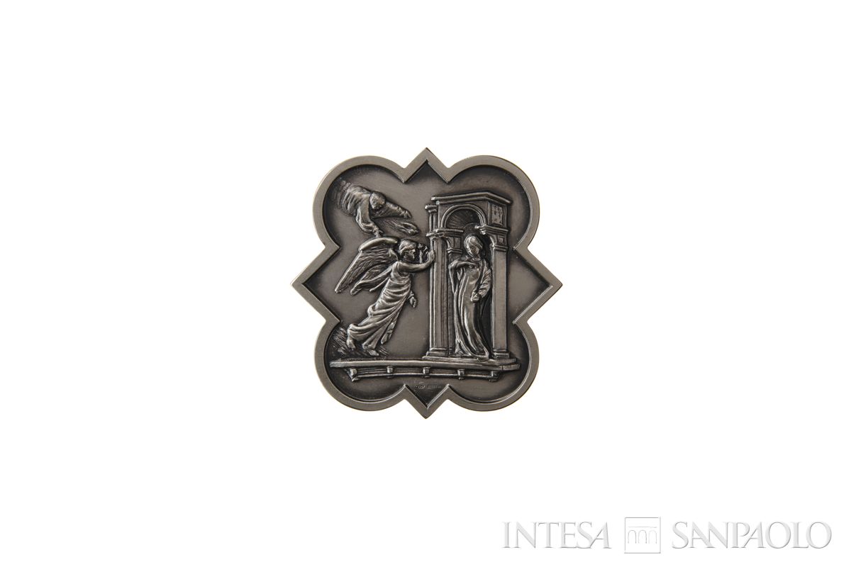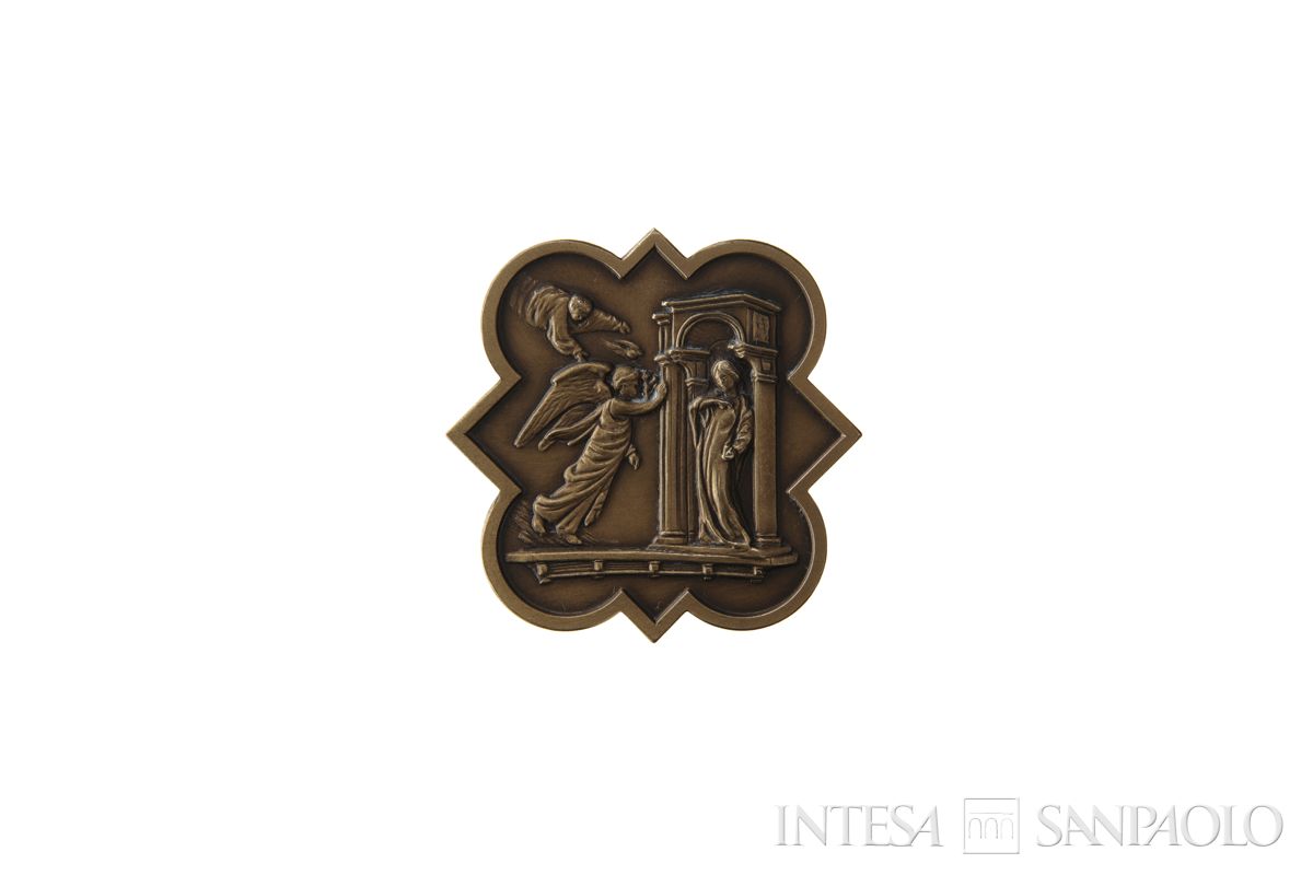La medaglia riproduce la formella raffigurante "L'Annunciazione", la prima delle venti scene realizzate da Lorenzo Ghiberti tra il 1403 e il 1424 per la Porta Nord del Battistero di San Giovanni, Firenze.