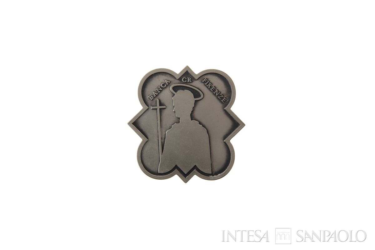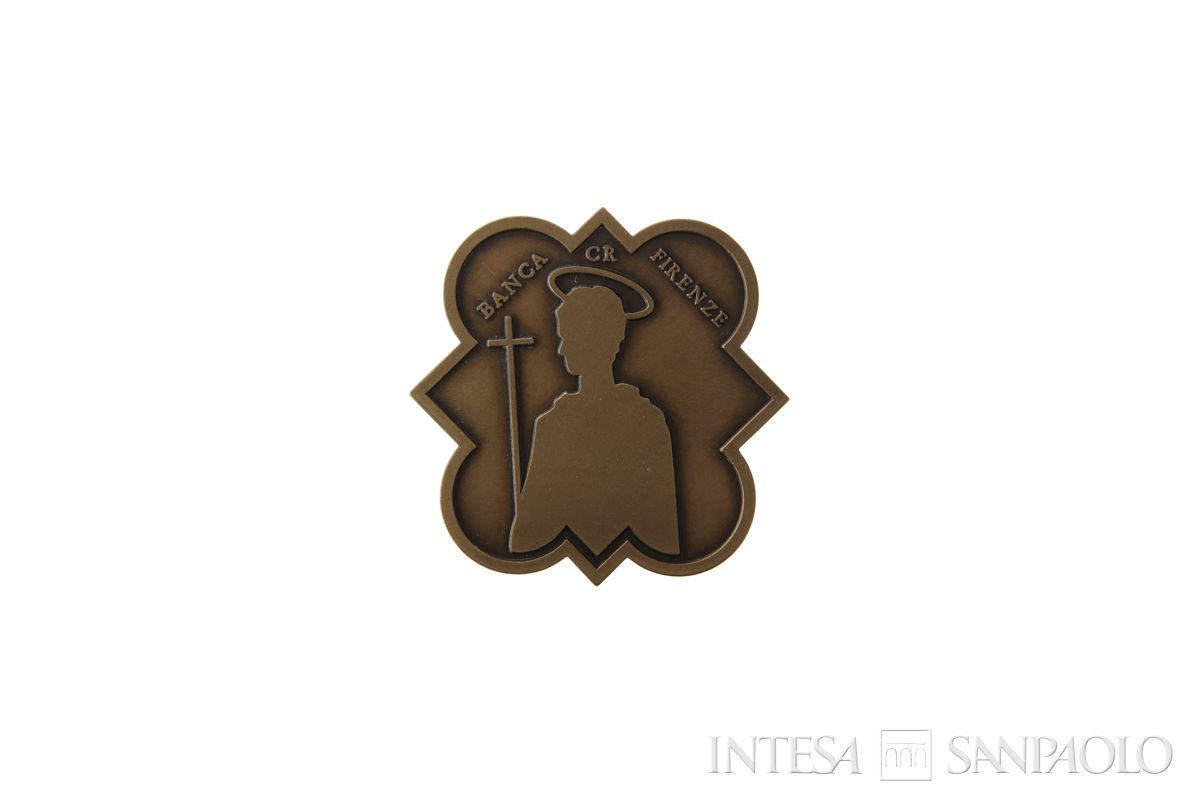 La forma della medaglia riproduce quella della formella che è anche la forma del logo dell'Istituto.