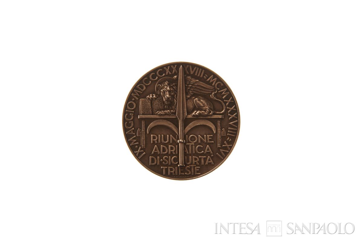 IX MAGGIO - MDCCCXXXVIII - MCMXXXVIII - XVI.; in campo: PAX | TIBI | MARCE | EVAN | GELI | STA. Sotto: RIUNIONE | ADRIATICA | DI SICURTA' | TRIESTE