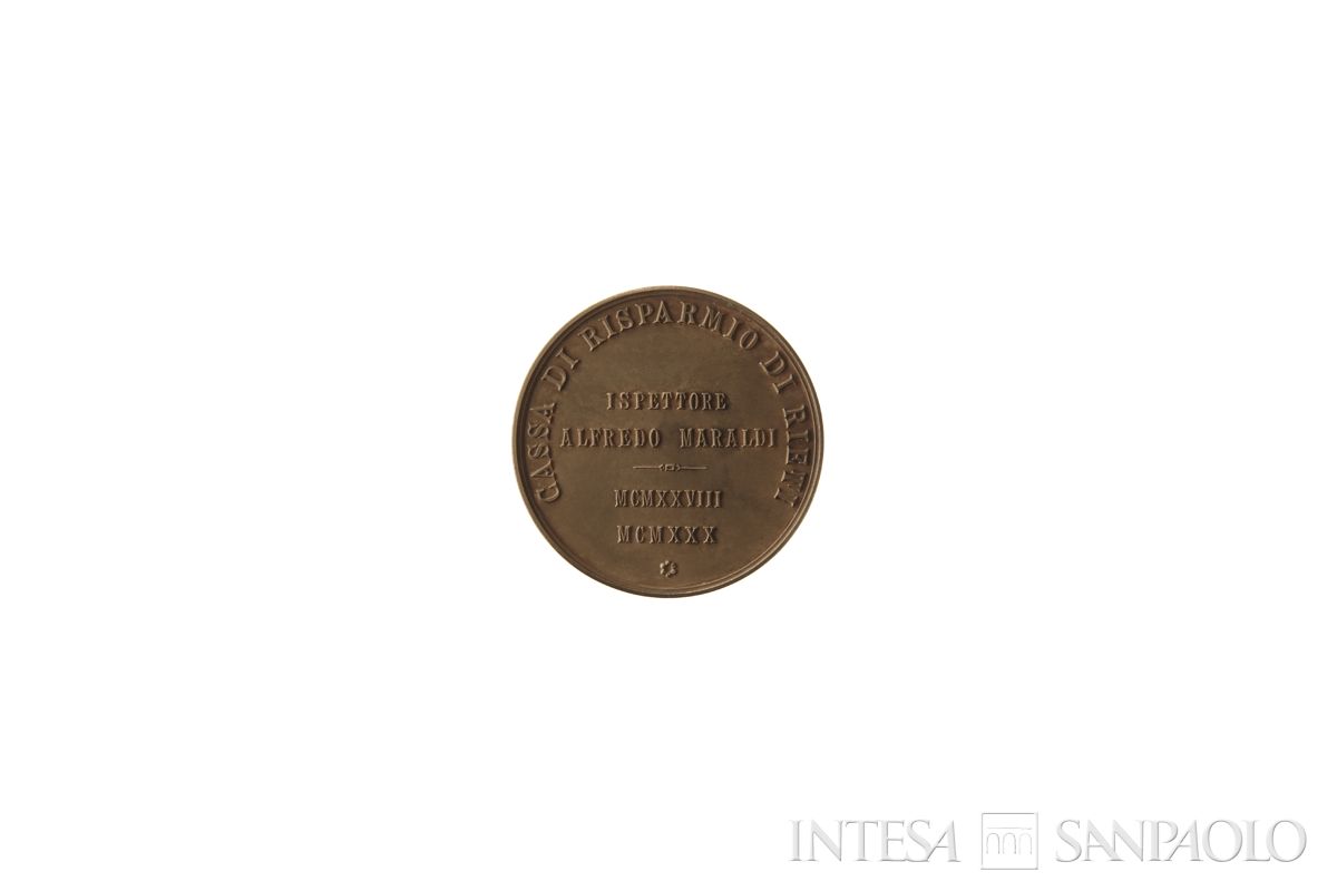 CASSA DI RISPARMIO DI RIETI; nel campo: ISPETTORE | ALFREDO MARALDI | MCMXXVIII | MCMXXX