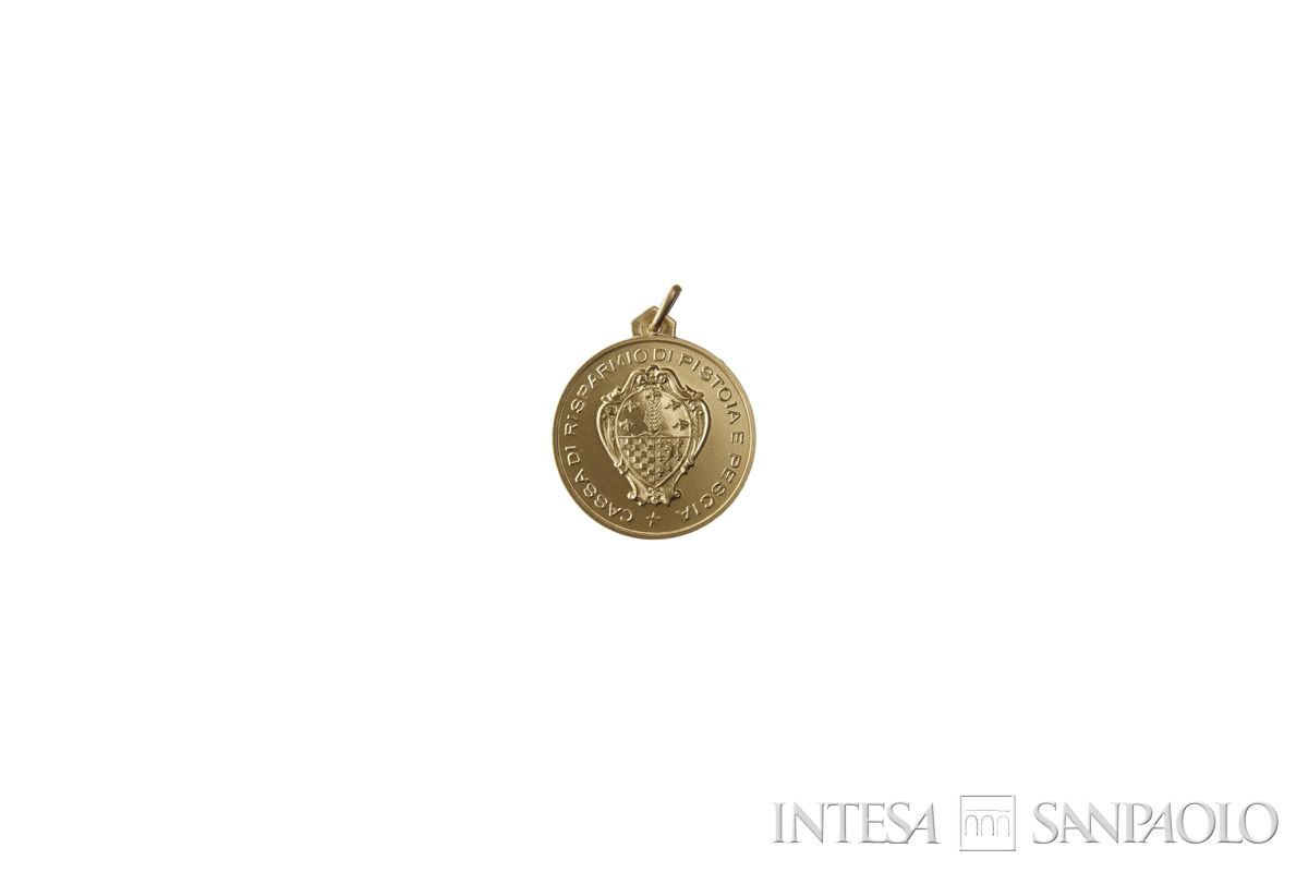 L'emblema che effigia il dritto della medaglia è stato realizzato e utilizzato a partire dal 1936 quando le due Casse, Pistoia e Pescia, si fusero (https://mappastorica.intesasanpaolo.com/bank/detail/IT-ISP-MAPPAITALIA-0000036/cassa-risparmio-pistoia-e-pescia).