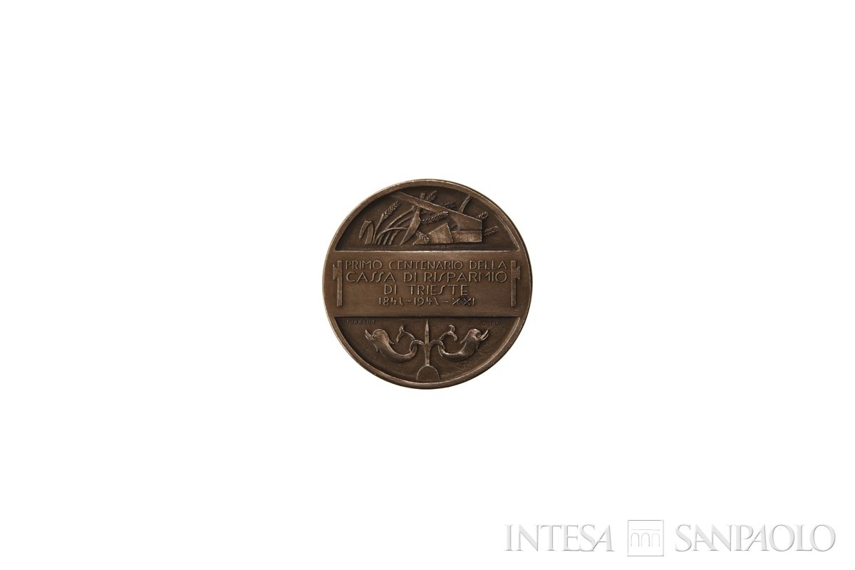 PRIMO CENTENARIO DELLA | CASSA DI RISPARMIO | DI TRIESTE | 1842-1942-XXI; in basso in piccolo: JOHNSON - A. CANCIANI