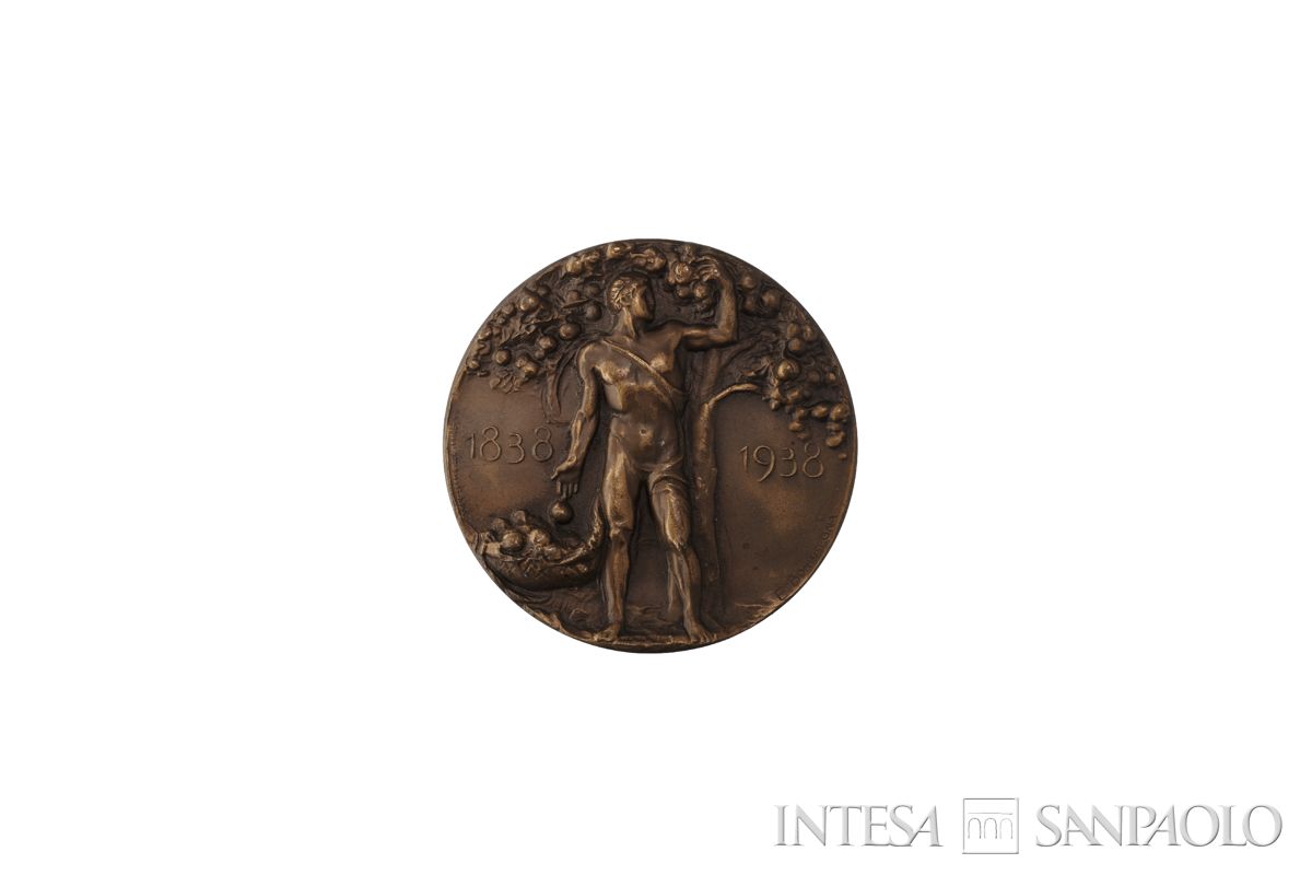 1838 1938; lungo il bordo a sinistra: F.M. LORIOLI F.LLI MILANO ROMA; lungo il bordo a destra E. BONINSEGNA