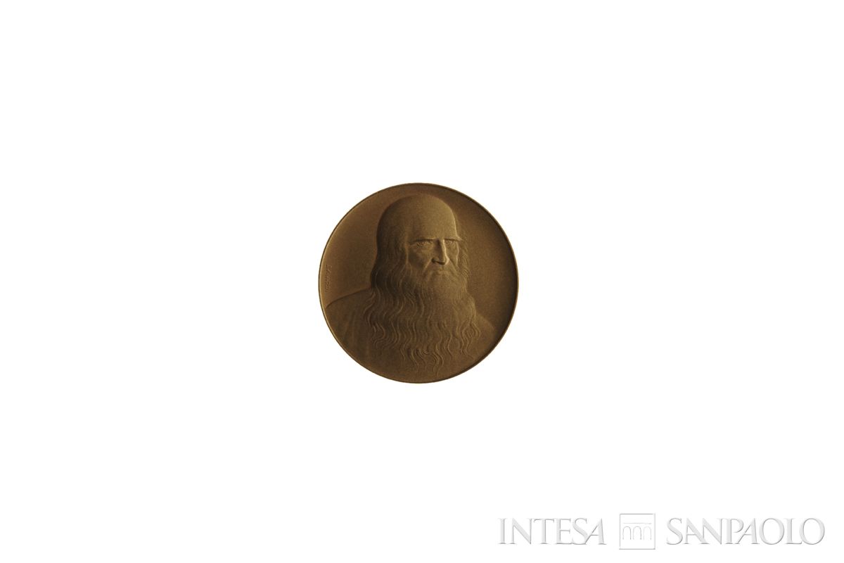 La medaglia fa parte di un trittico di cui si possiede un altro esemplare nella Cassa di Risparmio del Friuli Venezia Giulia con segnatura ICO/CRFVG/PVE/1969_001 e dalla Cassa di Risparmio di Viterbo, lacunoso proprio del pezzo su Leonardo da Vinci