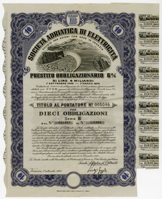 Adriatica di elettricità SpA, certificato obbligazionario al portatore