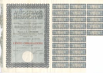 Autostrade Meridionali SpA, certificati obbligazionari al 6% al portatore