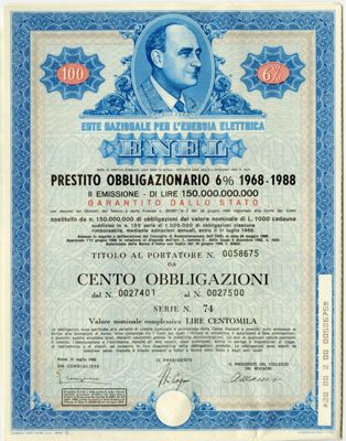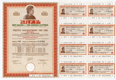 ENEL Ente nazionale per l'energia elettrica, certificati obbligazionari al portatore
