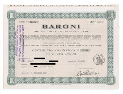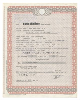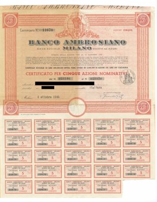 Banco Ambrosiano SpA, certificati azionari nominativi