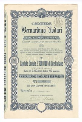 Cartiere Bernardino Rodari SA, certificato azionario al portatore