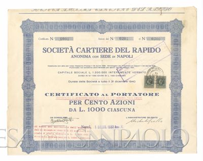 Carrozzeria Italo-Argentina SpA, certificato azionario al portatore