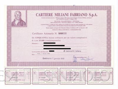 Cartiere Miliani Fabriano SpA, certificato azionario nominativo