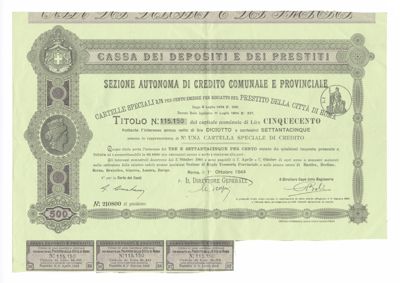 Cassa dei depositi e dei prestiti della Città di Roma, cartella speciale di credito al portatore