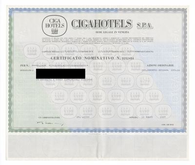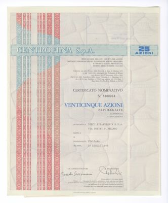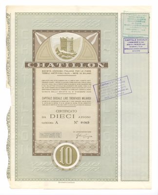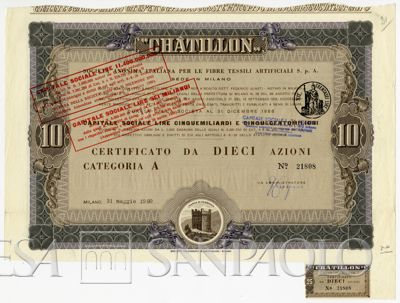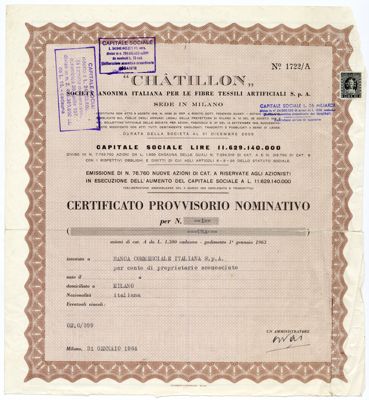 Châtillon Società anonima italiana per le fibre tessili artificiali SpA, certificati azionari di categoria A al portatore