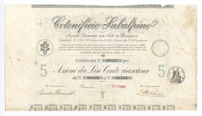 Cotonificio Subalpino SA, certificato azionario al portatore