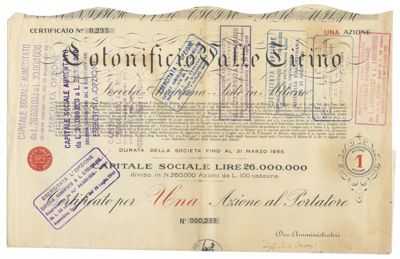 Cotonificio Valle Ticino SA, certificati azionari al portatore
