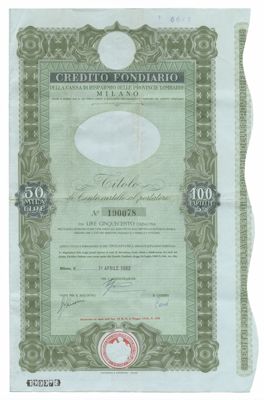Credito Fondiario della Cariplo, cartelle al portatore