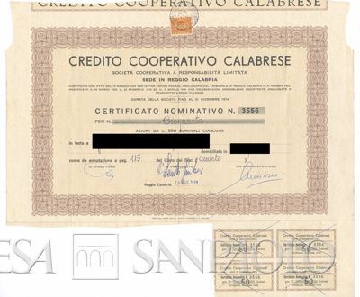Credito Cooperativo Calabrese Scrl, certificato azionario nominativo