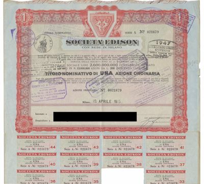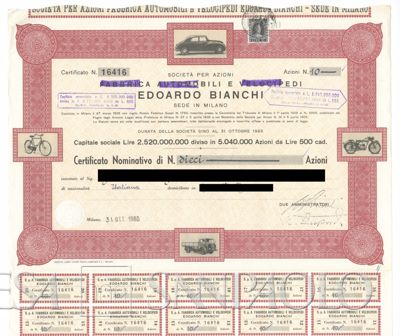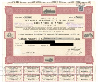 Edoardo Bianchi Fabbrica automobili e velocipedi SpA, certificati azionari nominativi
