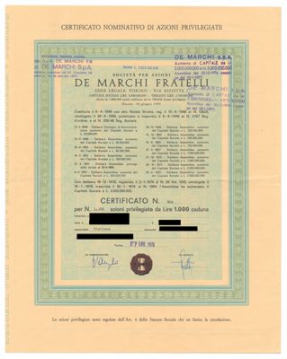 De Marchi Fratelli SpA, certificati azionari nominativi