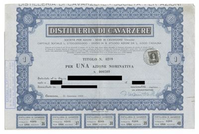 Distilleria di Cavarzere SpA, certificati azionari nominativi