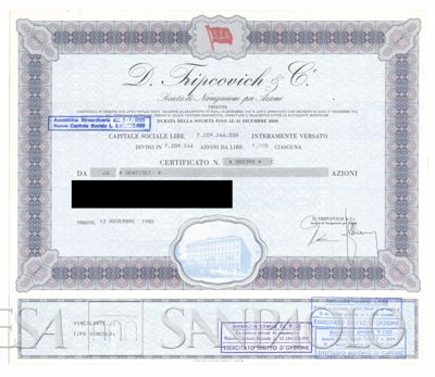 D. Tripovich & Ci. di Navigazione SpA, certificati azionari nominativi