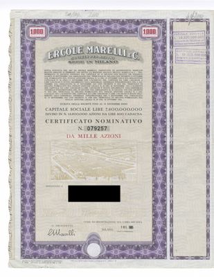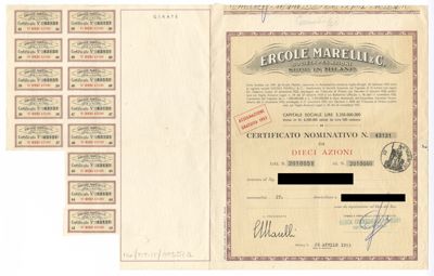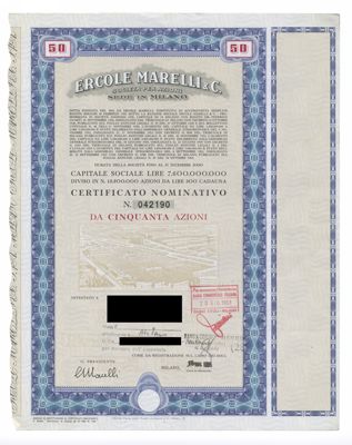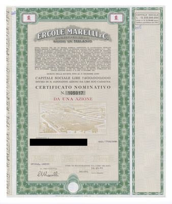 Ercole Marelli & C. SpA, certificato azionario nominativo