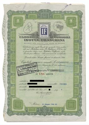 Fabbrica automobili Isotta Fraschini SpA, certificati azionari nominativi