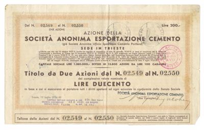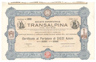 Esportatrice Transalpina SA, certificati azionari al portatore