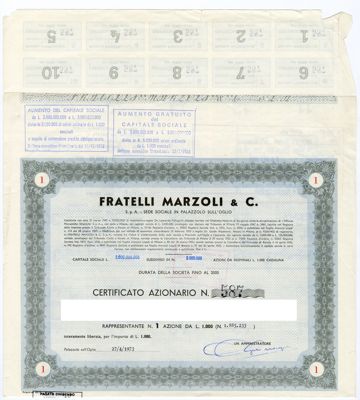 Fratelli Marzoli & C. SpA, certificato azionario nominativo