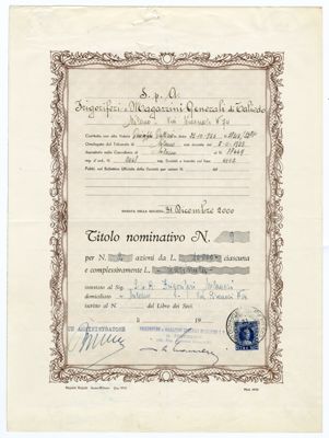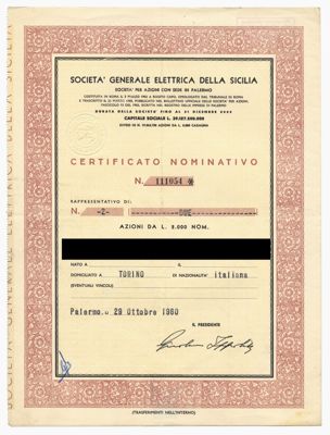 Generale Elettrica della Sicilia SpA, certificati azionari nominativi