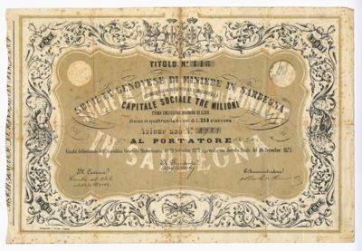 Genovese Miniere in Sardegna, certificato azionario al portatore